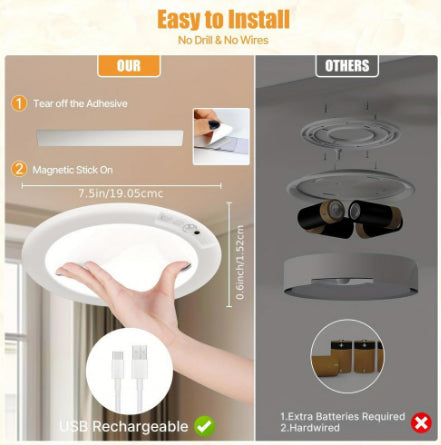 🏠💡Rechargeable Motion Sensor Ceiling Light with Remote - Magnetic Wireless Ceiling Light Battery Powered for Closet Shower Stairs Shed Hallway Porch Patio ect