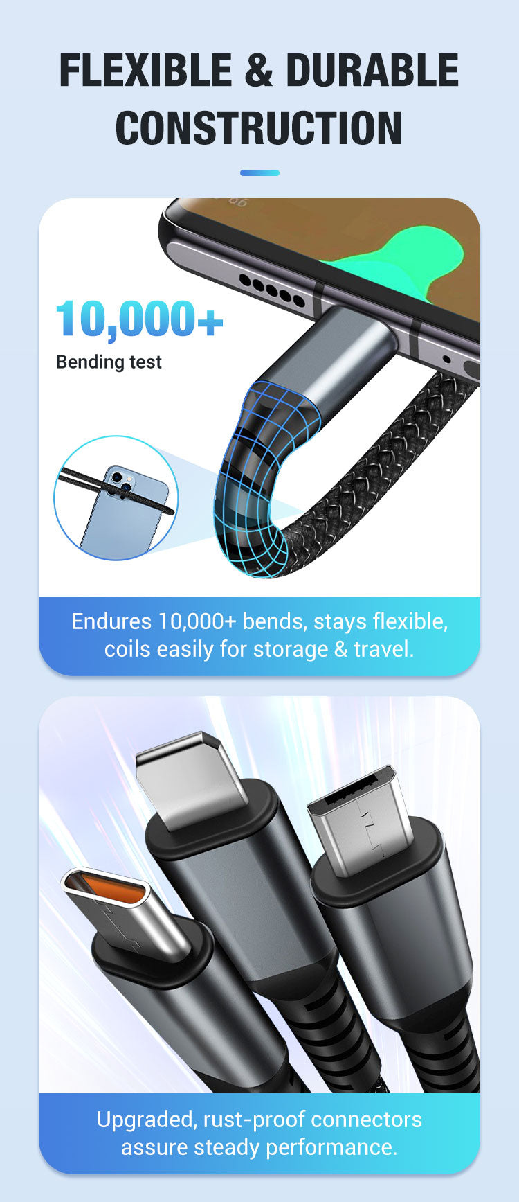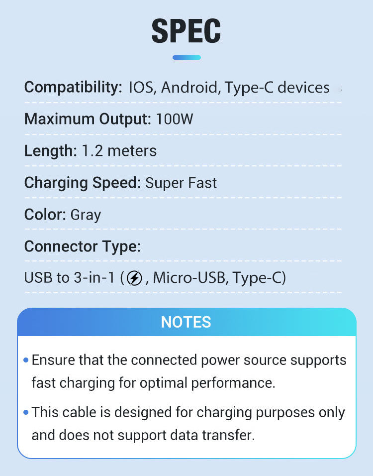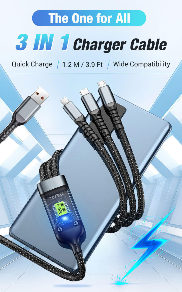 • Transparent Luminous 3-in-1 Fast Charging Cable - USB-C/Micro-USB with LED Power Indicator & Nylon Braiding 📱💫